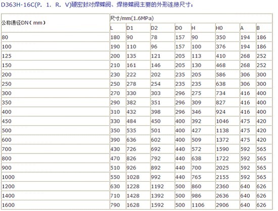 D363H—16C對(duì)焊蝶閥![]() D363H型鑄鋼多層次硬密封焊接蝶閥,對(duì)焊蝶閥簡(jiǎn)介: 永嘉定遠(yuǎn)閥門有限公司引進(jìn)能夠國(guó)外先進(jìn)技術(shù)的基礎(chǔ)上,采用精密的J形彈性密封圈和三偏心多層次金屬硬密封結(jié)構(gòu),被廣泛用于介質(zhì)溫度≤425℃的治金 、電力、石油化工、以及給排水和市政建設(shè)等工業(yè)管道上,作調(diào)節(jié)流量和載斷流體使用。該閥采用三偏心結(jié)構(gòu),閥座與碟板密封面均采用不同硬度和不銹鋼制作,具有良好的耐腐蝕性,使用壽命長(zhǎng),本閥軍郵雙向密封功能,產(chǎn)品符合國(guó)家GB/T13927-92閥門壓力試驗(yàn)標(biāo)準(zhǔn)。本焊接式硬密封蝶閥廣泛應(yīng)用于電站供熱系統(tǒng)和值化裂化主風(fēng)機(jī)管道系統(tǒng)、鋼鐵、冶金、化工等工業(yè)管道上作切斷或調(diào)節(jié)流量作用。 二、D363H對(duì)焊式硬密封蝶閥特點(diǎn): 1、采用三偏心蝶閥堪稱頂尖過程閥門,此設(shè)計(jì)使閥門為高溫、高壓、防火應(yīng)用中氣泡級(jí)密封的理想硬密封蝶閥。 三、對(duì)焊式硬密封蝶閥主要技術(shù)參數(shù): 公稱通經(jīng)DN(mm) DN(100~1200)mm、in4~48 四、焊接,對(duì)焊硬密封蝶閥的主要零部材料: 零件名稱 材料 五、D363H、D363W焊接蝶閥的連接尺寸: D363H-16C(P.1.R.V)硬密封對(duì)焊蝶閥、焊接蝶閥主要的外形連接尺寸
